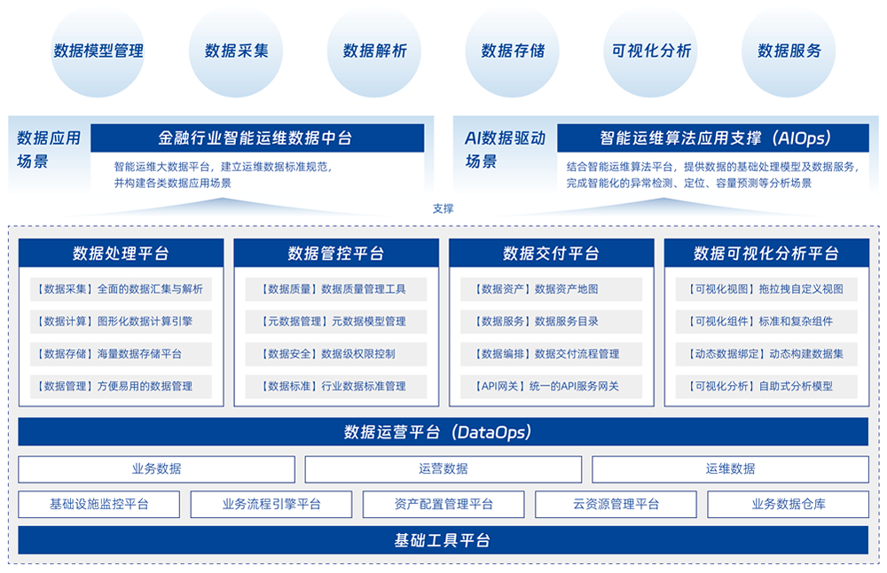 通過平臺(tái)整合各種運(yùn)維工具的數(shù)據(jù)和服務(wù)能力,在保證數(shù)據(jù)隱私和安全的前提下,通過大數(shù)據(jù)技術(shù)等手段,來解決 IT 系統(tǒng)運(yùn)行過程中產(chǎn)生的海量數(shù)據(jù)分析問題,并將分析結(jié)果通過數(shù)據(jù)共享服務(wù)提供給各類上層應(yīng)用,幫助 IT 運(yùn)維和管理人員全面了解系統(tǒng)運(yùn)行狀態(tài),提升可用性。