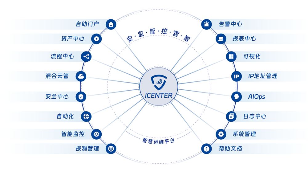 這是一款擁有自主知識產權及專利的產品。創新地將安全服務與神州信息傳統核心運維服務有機的融合,打造出集“安、監、管、控、營、智”為一體的智慧運維平臺。其中的安全中心模塊已形成了以運維賬號統一管理為基礎,覆蓋運維安全審計、網絡流量分析、云安全等眾多運維場景的安全能力。