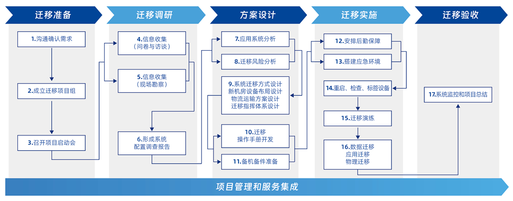 幫助客戶進(jìn)行數(shù)據(jù)中心的各類遷移服務(wù),包括傳統(tǒng)數(shù)據(jù)中心及新一代云數(shù)據(jù)中心的 IT 基礎(chǔ)設(shè)施設(shè)備遷移、系統(tǒng)遷移、數(shù)據(jù)遷移、應(yīng)用遷移、同城災(zāi)備/雙活、異地容災(zāi)等各類場(chǎng)景遷移。設(shè)備包含主機(jī)、存儲(chǔ)、網(wǎng)絡(luò)、服務(wù)器、云平臺(tái)、數(shù)據(jù)庫、中間件、應(yīng)用、災(zāi)備系統(tǒng)等各類軟硬件。遷移服務(wù)通過制定遷移策略和計(jì)劃,組織高效、準(zhǔn)確地執(zhí)行遷移,并在既定等停機(jī)窗口內(nèi)完成數(shù)據(jù)中心的搬、遷、建、管、謀等過程。 一站式集成遷移服務(wù)能力:新一代數(shù)據(jù)中心規(guī)劃、建設(shè)、優(yōu)化、容災(zāi)、遷移、物流、備件、運(yùn)維