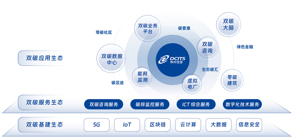 • 通過神州信息覆蓋云計算、區塊鏈、大數據、IoT 等資源匯聚能力, 構建雙碳基建生態,為雙碳應用系統提供基礎設施建設保障。